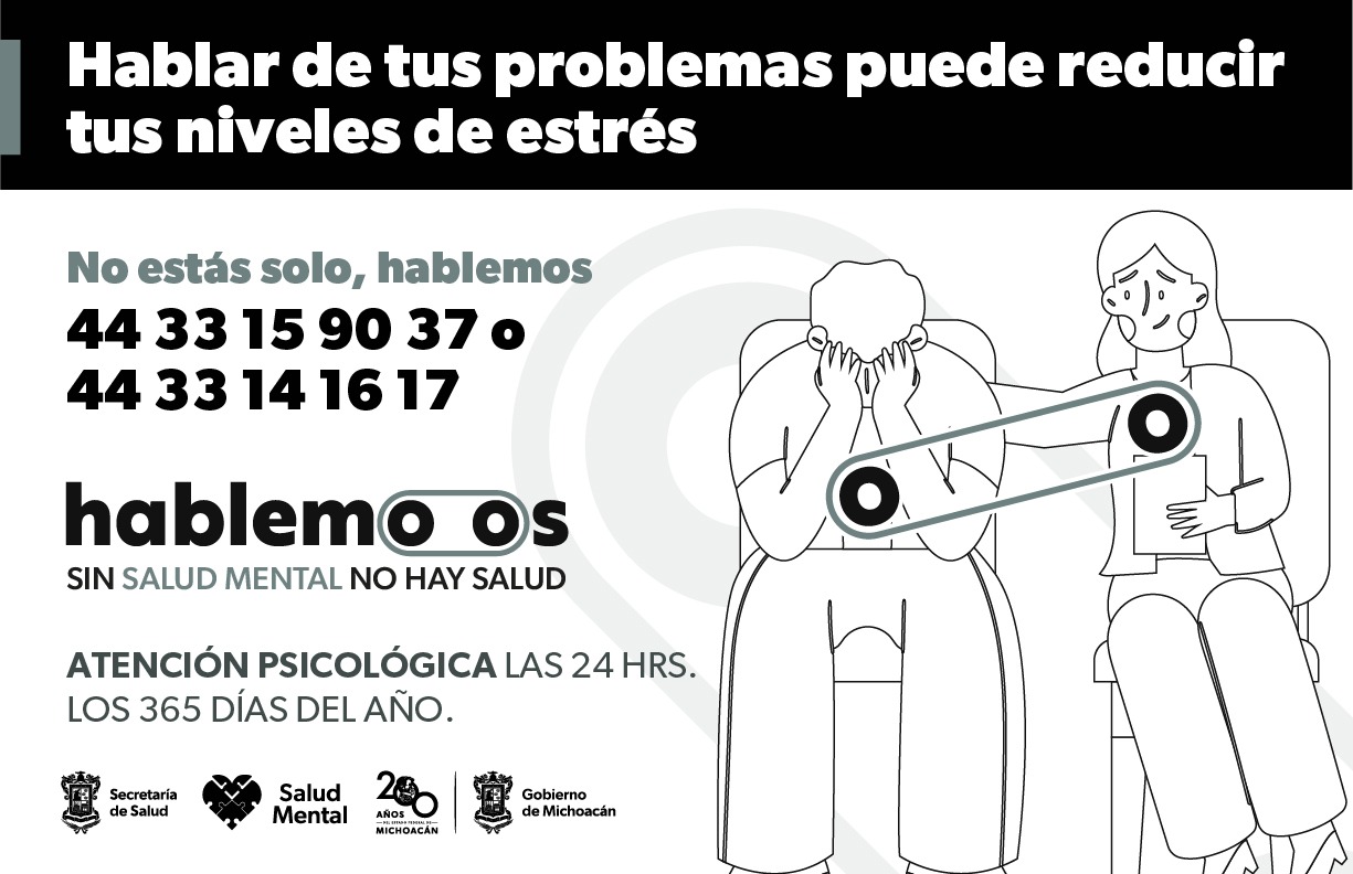 Estar estresado trae como consecuencia depresión; insomnio; deterioro en las relaciones familiares, laborales o sociales; o puede volverte agresivo. Para prevenir esto, puedes acudir al Hospital Psiquiátrico de Morelia Dr. José Torres Orozco de la Secretaría de Salud de Michoacán (SSM), o a uno de los cinco Centros Comunitarios de Salud Mental y Adicciones (Cecosamas) del estado.