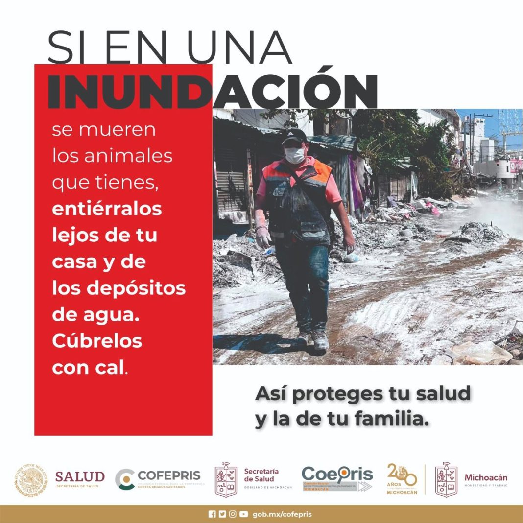 Ante el inicio de la temporada de lluvias y ciclones, la Secretaría de Salud (SSM), a través de la Comisión Estatal para la Protección contra Riesgos Sanitarios (Coepris), emite una serie de recomendaciones a la población para prevenir enfermedades producto de una inundación.