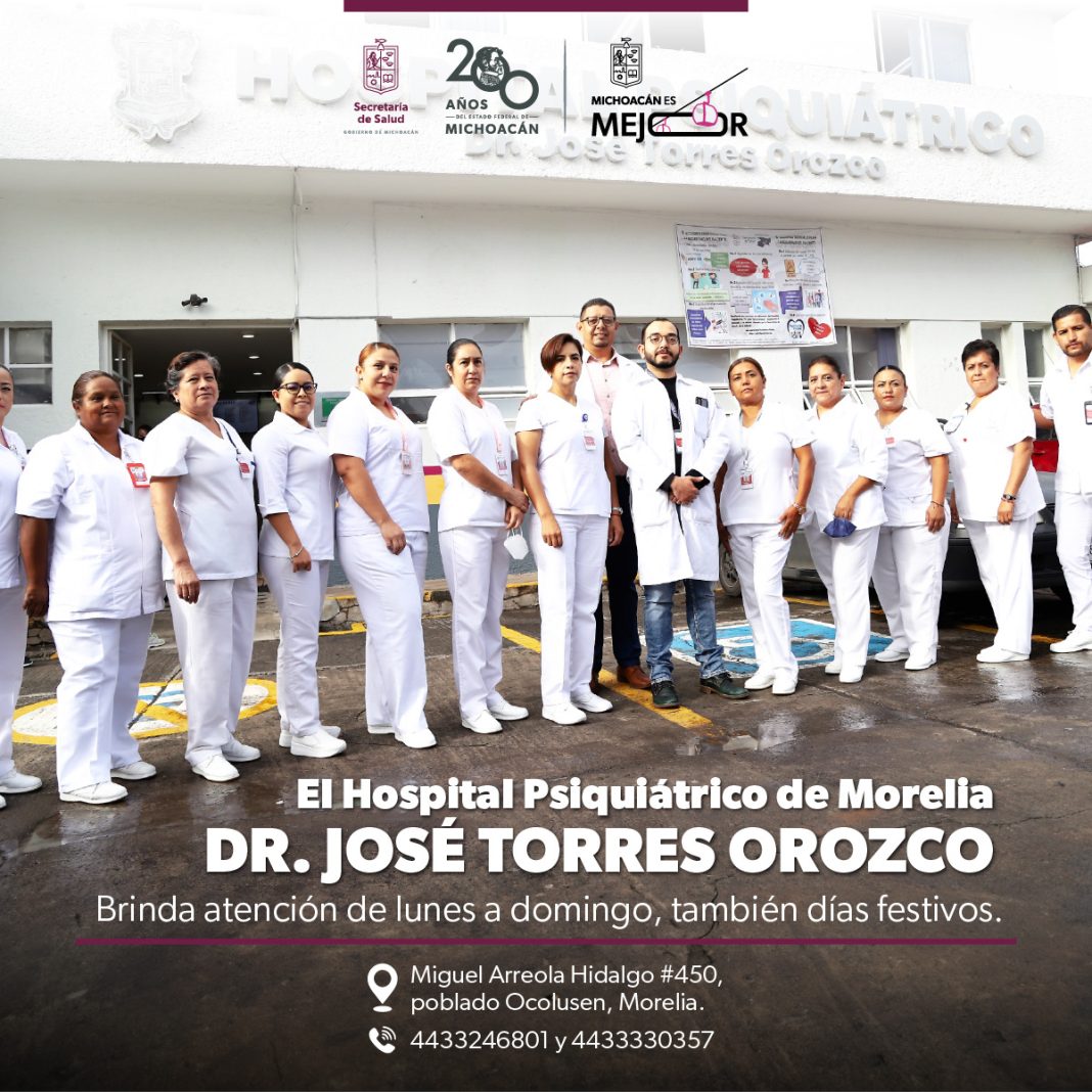 Las consultas en el Hospital Psiquiátrico de Morelia son de lunes a viernes de 8:00 a 20:00 horas, mientras que las urgencias las 24 horas del día. Este plantel se encuentra ubicado en la calle Miguel Arreola 450, en la colonia Poblado Ocolusen, en Morelia, con teléfonos 443 32 46801 y 443 333 0357.