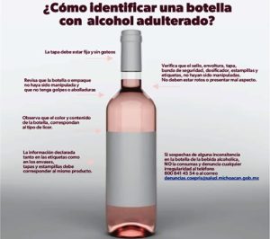 Con el fin de concientizar a la ciudadanía sobre los riesgos al organismo por el consumo de bebidas alcohólicas adulteradas, la Secretaría de Salud de Michoacán (SSM), a través de la Comisión Estatal para la Protección contra Riesgos Sanitarios (Coepris), emite recomendaciones para adquirir productos seguros que no representen un daño a la salud.