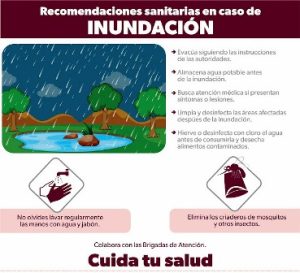 Las recomendaciones que estas brigadas emiten a la población son necesarias para que las familias que sufrieron encharcamientos, esperen a que baje el agua de lluvia del interior de sus hogares, y una vez que esto ocurra, laven pisos y paredes con jabón y cloro, antes de volverla a habitar, y hacer lo mismo con los enceres domésticos y trastes antes de utilizarlos para preparar alimentos, a efecto de evitar las infecciones gastrointestinales.