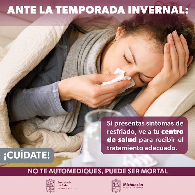 Las personas enfermas deberán usar cubrebocas, cubrir la nariz o boca al toser o estornudar, desinfectar manos con gel antibacterial, abrigarse, evitar cambios bruscos de temperatura, y consumir frutas ricas en vitaminas A y C, así como beber abundantes líquidos.