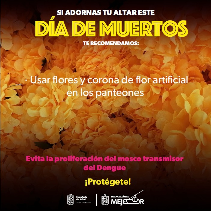 En el marco de la celebración de la Noche de Muertos, una de las tradiciones más importantes y visitadas del estado, la Secretaría de Salud de Michoacán (SSM) hace un llamado a la población para reforzar las medidas de prevención contra el dengue y evitar la proliferación del mosquito Aedes aegypti.