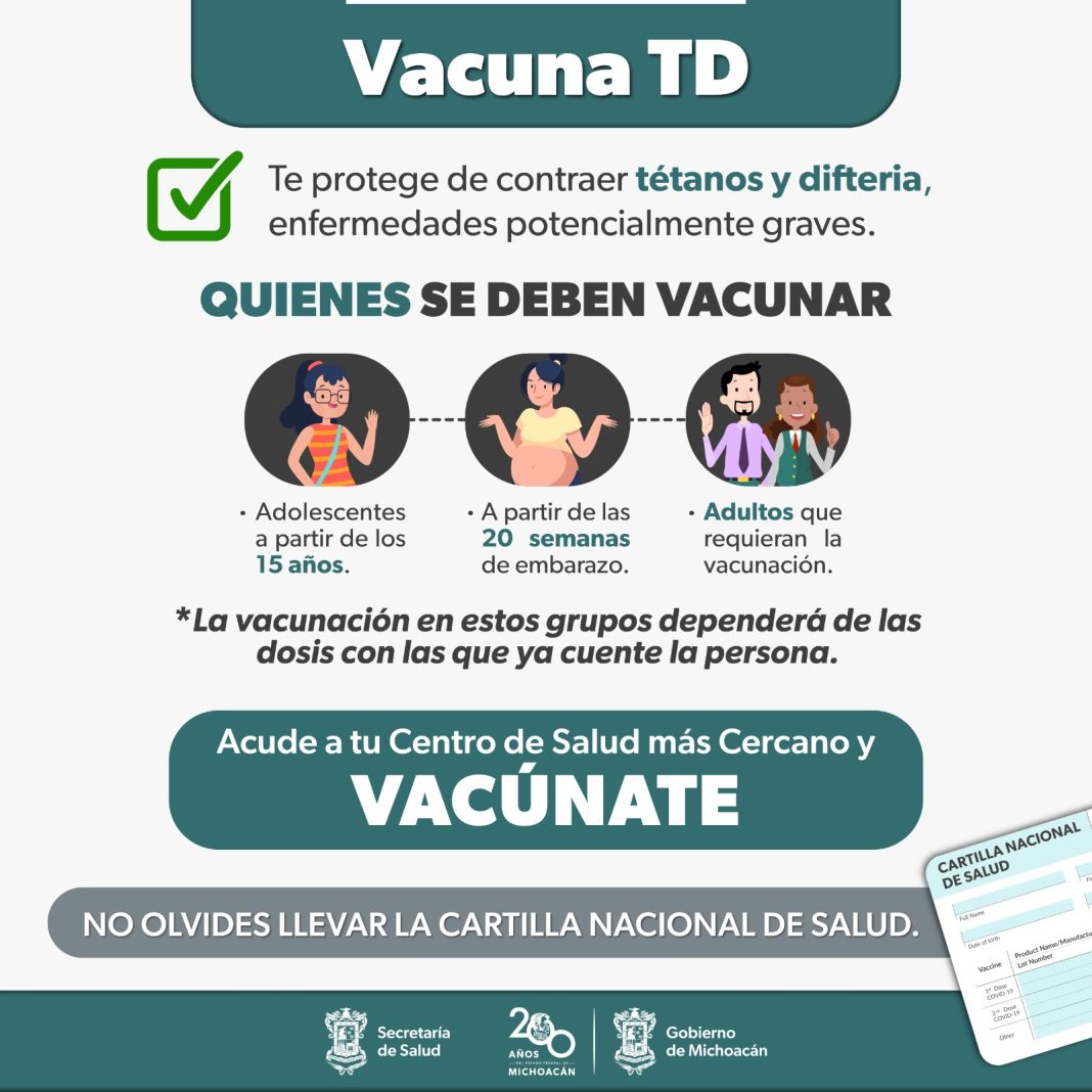 Para proteger a la madre y al bebé, la Secretaría de Salud de Michoacán (SSM) invita a todas las mujeres embarazadas y con más de 20 semanas de gestación a vacunarse contra el tétanos en el centro de salud más cercano a su domicilio.