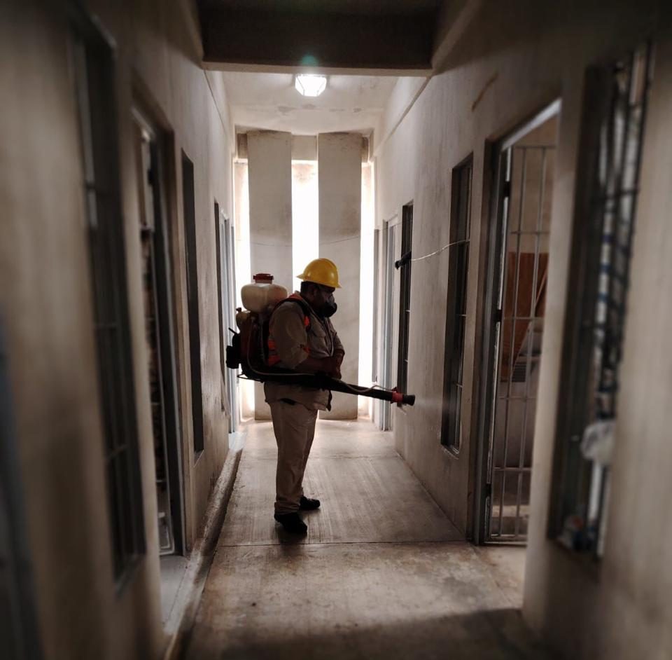 En Tacámbaro, con el objetivo de controlar y erradicar el mosquito transmisor y evitar contagios a las más de 255 personas privadas de la libertad y trabajadores, el personal de salud aplicó el ingrediente activo con bombas de dos tiempos de aspersión tipo manual en los techos y paredes de las diferentes áreas del penal, así como en patios, estacionamientos, aduana vehicular y torres de vigilancia.