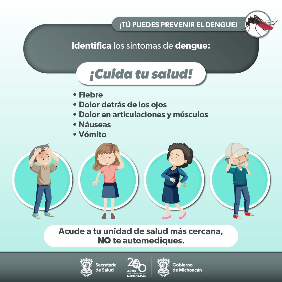 Morelia, Michoacán.- Sed intensa, sangrados en encías y nariz, vómitos persistentes, respiración acelerada y dolor abdominal intenso, son los síntomas del dengue grave, enfermedad que puede ser mortal si no se trata a tiempo, informó la Secretaría de Salud de Michoacán (SSM).