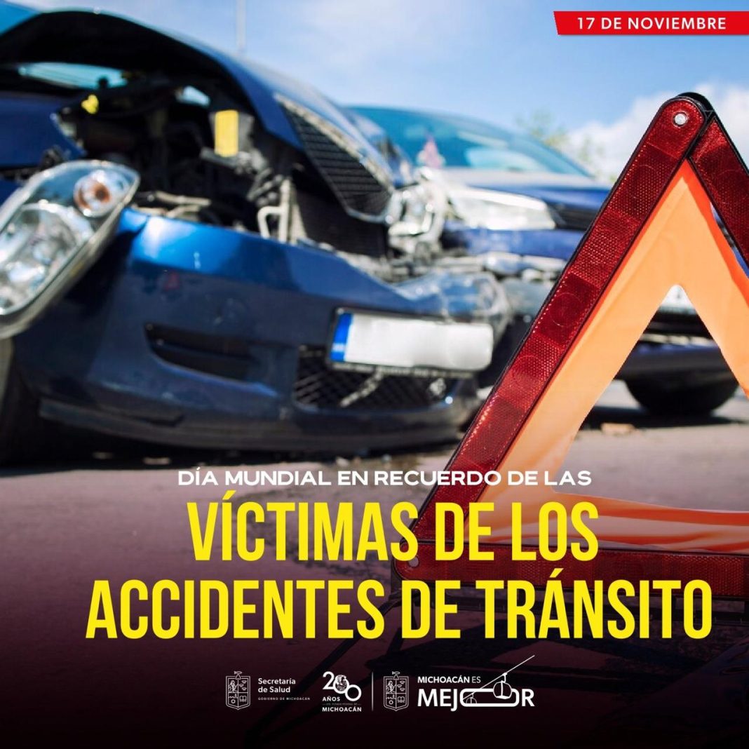 Morelia, Michoacán.- El tercer domingo de noviembre de cada año se conmemora el Día Mundial en recuerdo de las víctimas de Accidentes de Tránsito, por ello, este 17 de noviembre, la Secretaría de Salud de Michoacán (SSM) invita a la población a tomar conciencia de la importancia de prevenir esta incidencia.