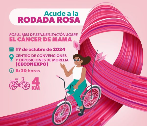Como parte de las acciones de educación y prevención para la sensibilización sobre la lucha contra el cáncer de mama, se invita a la Rodada Rosa.