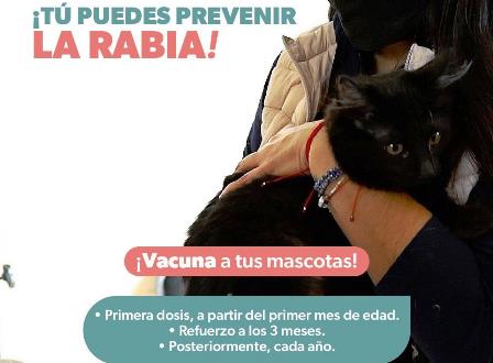 La vacuna contra la rabia puede solicitarse en los centros de salud y hospitales de la SSM, es gratuita y consta de tres dosis en el brazo del individuo y debe de aplicarse de forma inmediata ante el ataque de cualquier animal silvestre, como murciélagos, zorros, zorrillos, armadillos, monos y murciélagos, no sólo por perros y gatos.