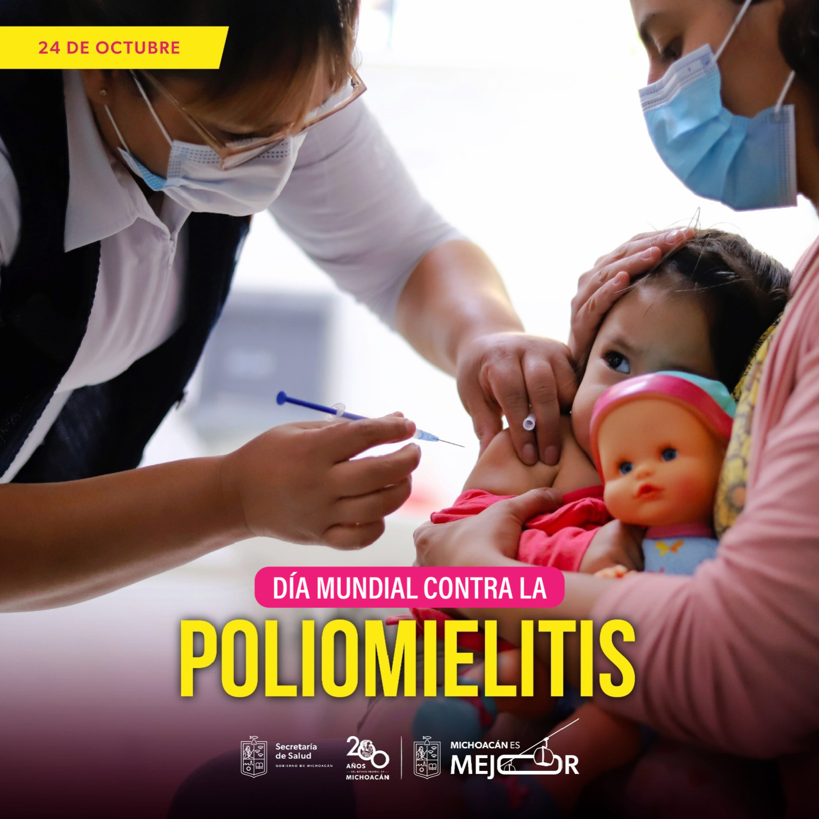 En el Día Mundial contra la Poliomielitis, la Secretaría de Salud de Michoacán (SSM) exhorta a la población a llevar a vacunar a sus hijos e hijas, solicitando la vacuna hexavalente en los 364 centros de salud, a los dos, cuatro, seis y 18 meses de edad.
