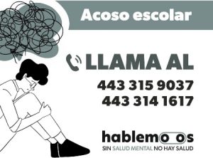 Las y los adolescentes que sufren acoso o violencia escolar pueden solicitar atención psicológica las 24 horas del día a través de las líneas telefónicas 443 314 1617 y 443 315 9037.