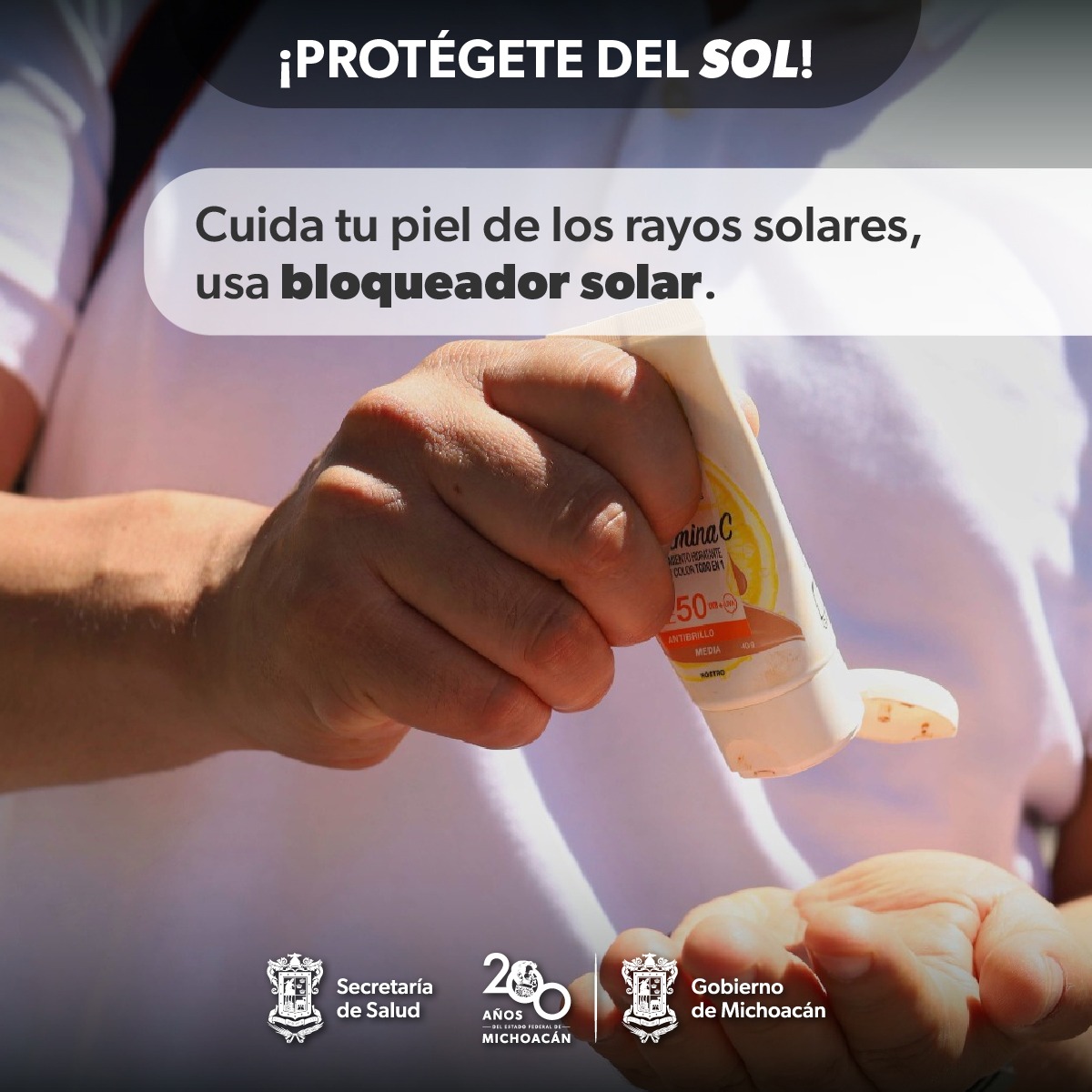 Para prevenir quemaduras por exposición prolongada al sol durante esta temporada de calor, la Secretaría de Salud de Michoacán (SSM) recomienda a la población usar bloqueador solar al salir a la calle o hacer actividades al aire libre.