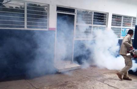 Este año, el equipo de vectores ha reforzado la nebulización en escuelas del nivel básico y medio superior, para evitar algún brote de chinches, además del dengue, los cuales pueden poner en riesgo la salud de niñas, niños y adolescentes.