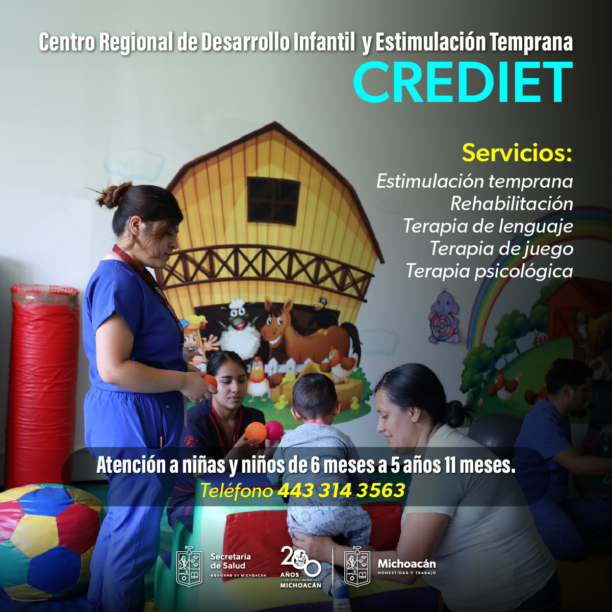 En Michoacán, las niñas y niños de hasta cinco años y 11 meses con espectro autista, trastornos del lenguaje, déficit de atención y problemas motrices pueden acceder a terapias y consultas gratuitas en el Centro Regional de Desarrollo Infantil y Estimulación Temprana (Crediet), de la Secretaría de Salud (SSM).
