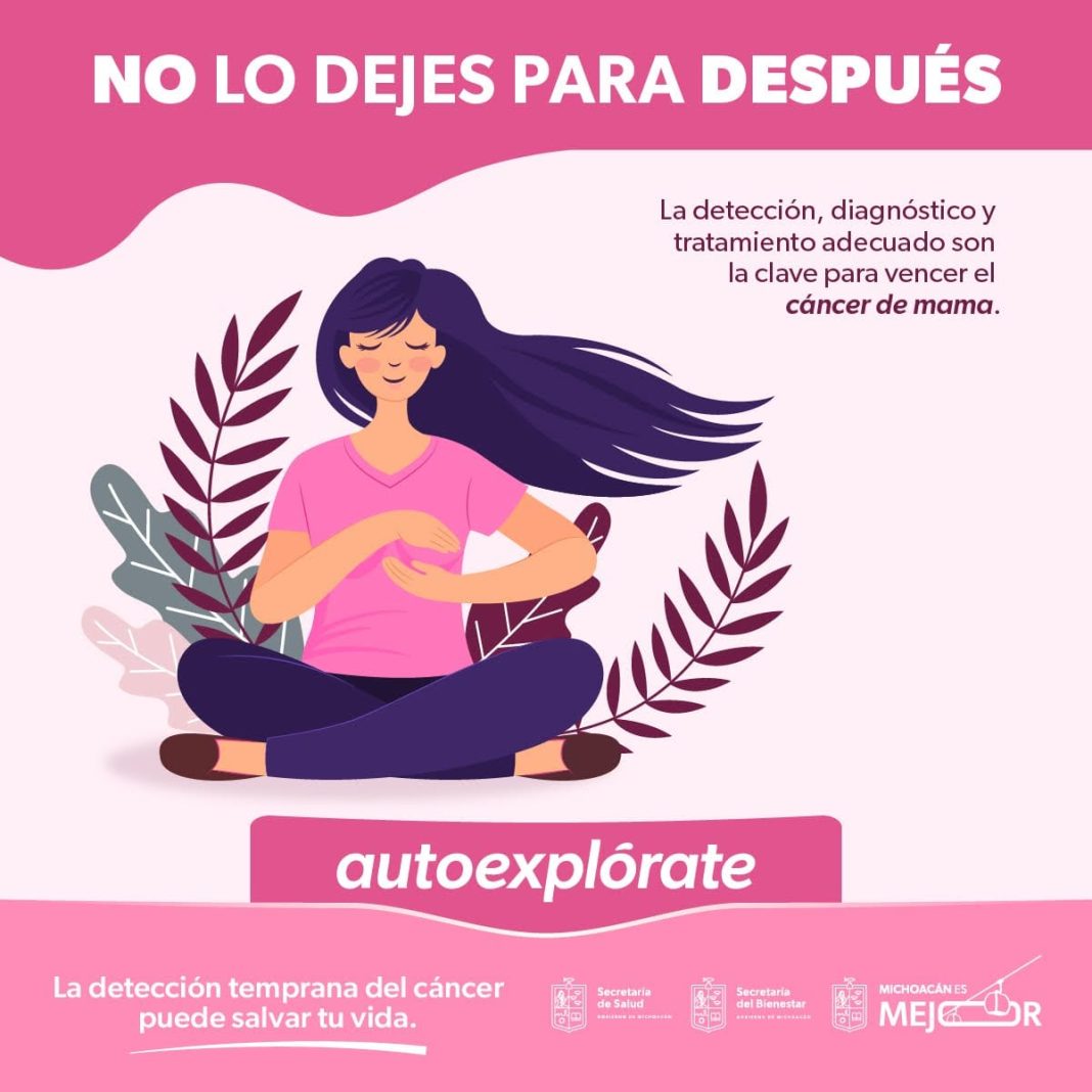 Morelia, Michoacán.- Detectar el cáncer de mama en etapas tempranas, para brindar diagnóstico y tratamiento oportuno es prioridad de la Secretaría de Salud de Michoacán (SSM) por lo que invita a mujeres de 40 a 69 años de edad a realizarse su mastografía.