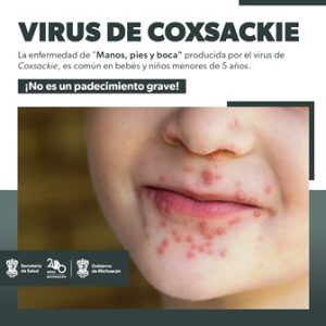 La Secretaría de Salud de Michoacán (SSM) exhorta a la población a identificar a tiempo y a prevenir la enfermedad de manos, pies y boca, padecimiento producido por el virus coxsackie, que si bien, no es grave y en la entidad no se han registrado casos, es altamente contagiosa y común en bebés y menores de cinco años.