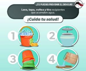 Mantén limpios los recipientes de agua para prevenir el dengue