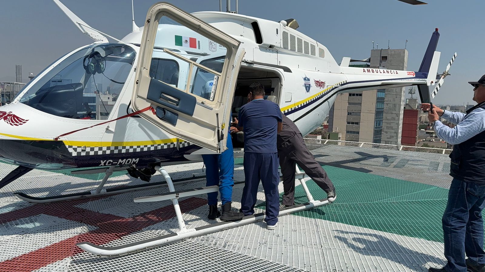 La tripulación aeromédica realizó el abordaje del órgano y del personal médico en el helipuerto del Hospital de Alta Especialidad del Instituto de Seguridad y Servicios Sociales de los Trabajadores del Estado (ISSSTE) para ser llevado hacia el Centro Médico Dalinde.