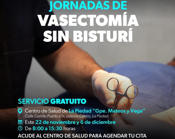 Con el propósito de promover la paternidad responsable, reiteran la invitación a todos los hombres mayores de 18 años de La Piedad y Parácuaro a realizarse sin costo la vasectomía sin bisturí, vigente hasta el 6 de diciembre.