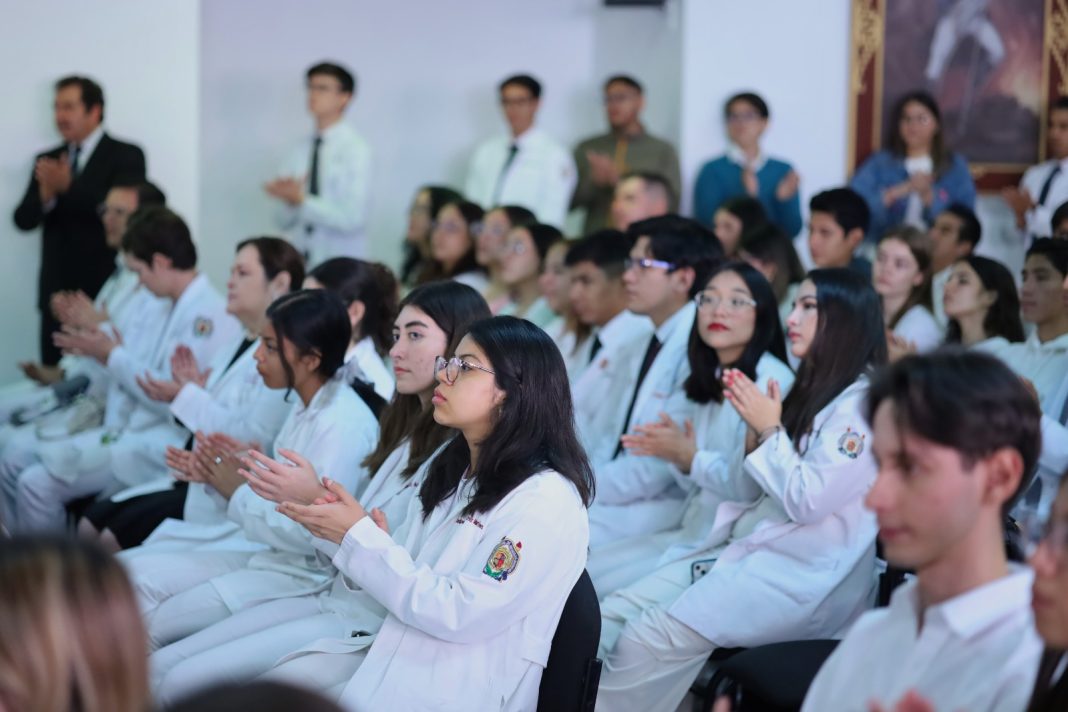 Acompañado del coordinador estatal del IMSS Bienestar, Axayácatl Marín Correa y del director de la Facultad de Medicina, Víctor Hugo Mercado Gómez, Cortés Rangel afirmó que las y los médicos son guerreros que, con manos sabias y corazón sensible, transforman el dolor en alivio y que implica también trabajar en equipo, mantenerse unidos ante las adversidades y solo así salir adelante.