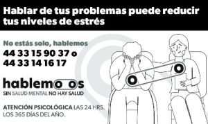 La institución pone a disposición de la población las dos líneas telefónicas Hablemoos 443 314 1617 y 443 315 9037, el Hospital Psiquiátrico José Torres Orozco, el Centro de Salud Mental Zamora (Cesame) y los cuatro Centros Comunitarios de Salud Mental y Adicciones (Cecosama), ubicados en Morelia, Zitácuaro, Uruapan y Lázaro Cárdenas, atendidos por un grupo de especialistas capacitados para la detección oportuno de factores de riesgo.