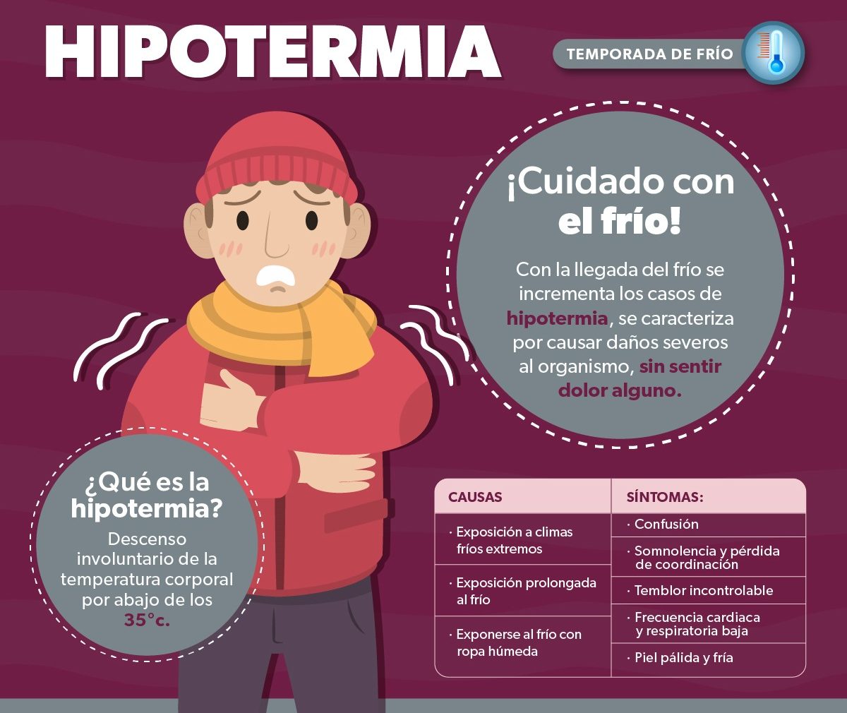 La Secretaría de Salud de Michoacán (SSM) exhorta a la población a detectar a tiempo los signos de alarma de la hipotermia, y evitar así defunciones por esta causa, sobre todo en los menores de 6 años, adultos mayores y personas con enfermedades crónicas.