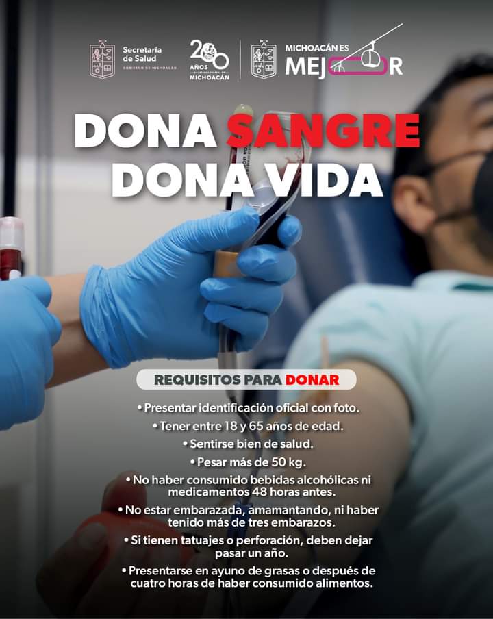 El Centro Estatal de Transfusión Sanguínea de Morelia brinda atención de lunes a viernes de 7:30 a 19:00 y sábados y domingos de 8:00 a 18:00 horas; para programar una cita es necesario llamar al teléfono 443 324 3919, extensión 118.