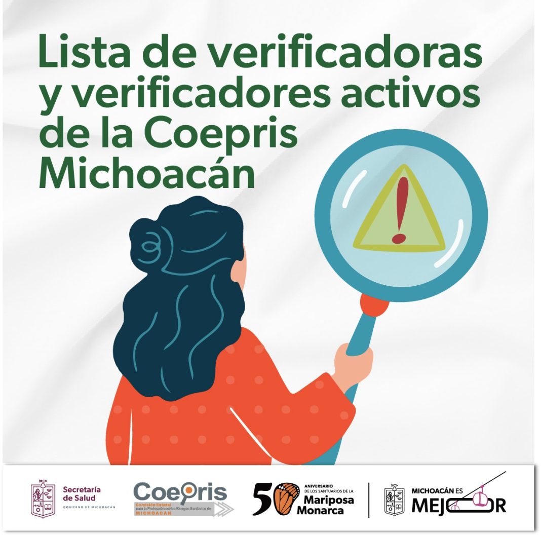 Morelia, Michoacán.- La Comisión Estatal para la Protección contra Riesgos Sanitarios de Michoacán (Coepris)  informa a la ciudadanía que ya está disponible el listado oficial de verificadoras y verificadores activos que forman parte del equipo autorizado para realizar visitas sanitarias en el estado.