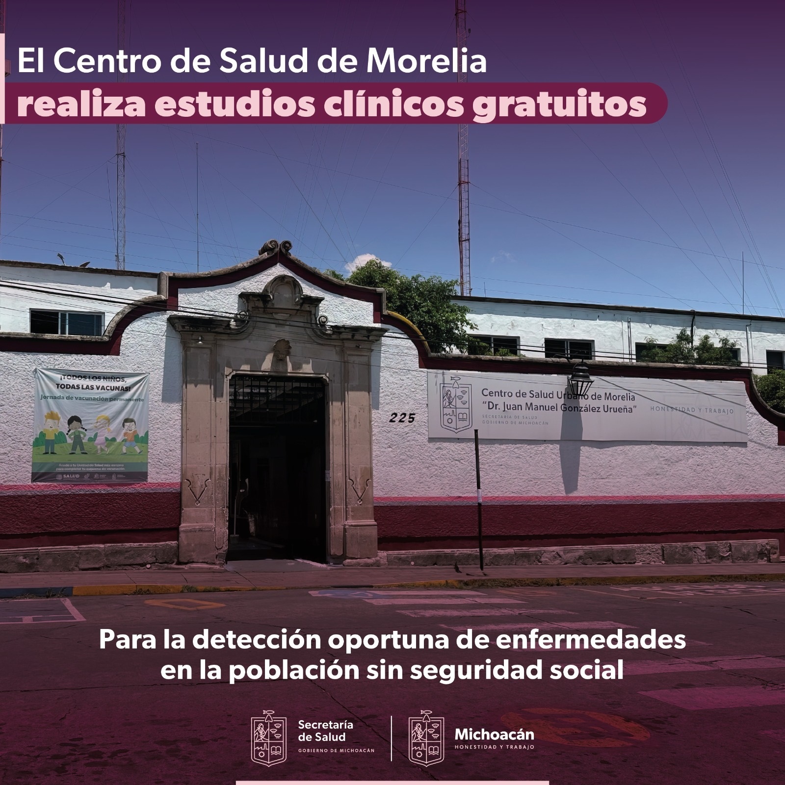 Morelia, Michoacán.- A fin de atender a la población sin seguridad social, la Secretaría de Salud de Michoacán (SSM) ofrece análisis clínicos y bacteriológicos sin costo alguno, en el Centro de Salud Urbano de Morelia “Dr. Juan Manuel González Urueña”.