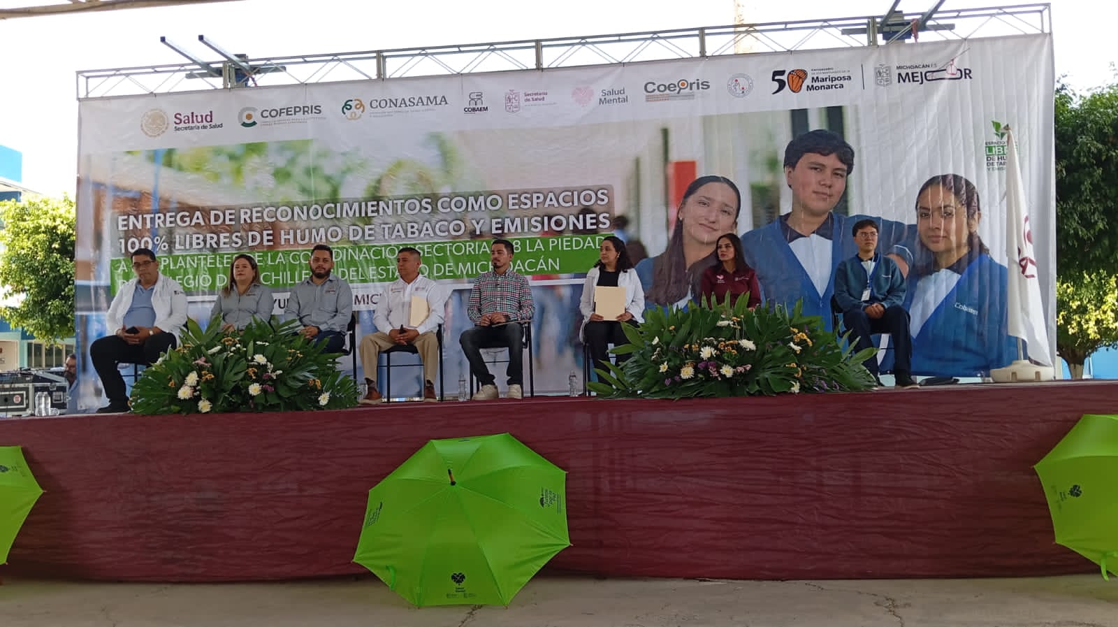 La Secretaría de Salud de Michoacán (SSM) lleva a cabo una estrategia integral para proteger a nuevas generaciones de los riesgos asociados al tabaquismo y el uso de vapeadores, a través de la Dirección de Salud Mental, reconoció a 15 planteles educativos del Colegio de Bachilleres de Michoacán (Cobaem) como «Espacios 100% Libres de Humo de Tabaco y Emisiones».