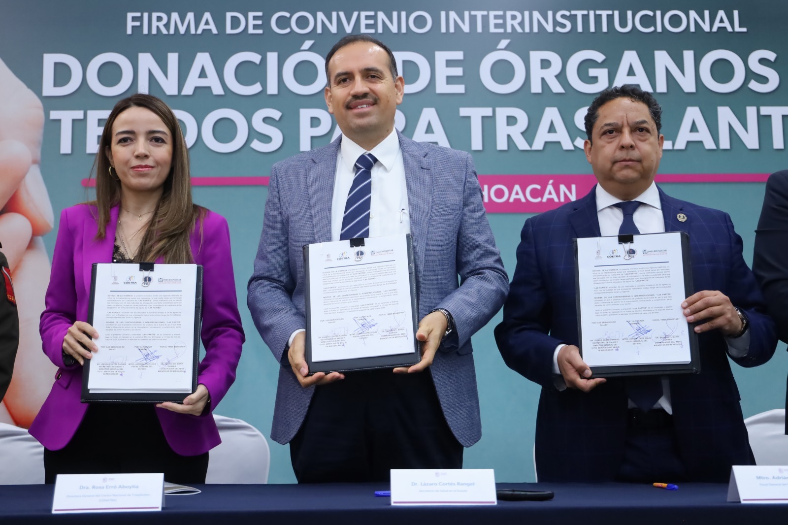 Para fortalecer la cultura de la donación de órganos y tejidos en el estado, se concretó hoy la firma de un convenio de colaboración entre la Secretaría de Salud de Michoacán (SSM), la Fiscalía General del Estado (FGE) y el IMSS Bienestar.