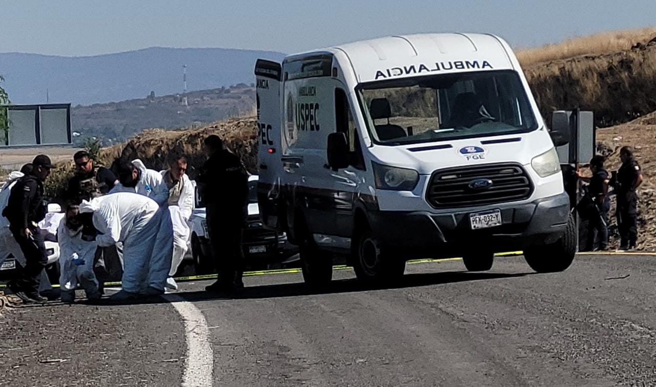 De inmediato acudieron los policías locales, mismos que al revisar el área localizaron los cuerpos sin vida y con huellas de violencia, de dos hombres tirados sobre el acotamiento, por lo que resguardaron el lugar y solicitaron el la intervención de la Fiscalía General del Estado.