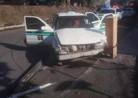 Apatzingán, Mich.- Un taxi de la agrupación Máquinas Rojas, fue abandonado luego de un aparatoso choque, en la colonia Lomas de Palmira, perteneciente a esta demarcación de Apatzingán.