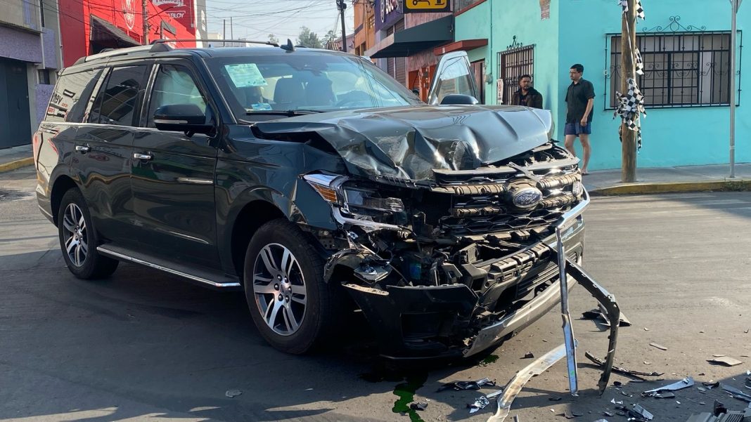 Sin respetar los límites de velocidad, el conductor de una camioneta blindada al servicio del secretario de Gobierno, Carlos Torres Piña, se vio involucrado en un percance vial en calles de la colonia Ventura Puente.