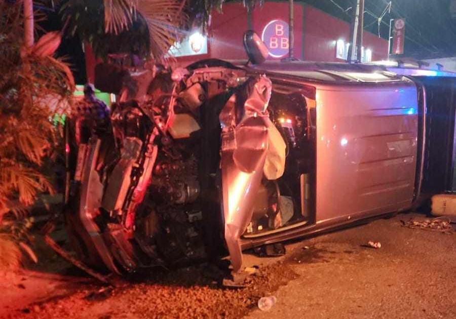 El accidente se registró la noche de este sábado a la altura de la calle Miguel Rincón, donde una camioneta de redilas, color blanco fue impactada por una camioneta Chevrolet, Silverado, con matrícula NP-4635-C, la cual volcó, mientras que la cabina de la primera unidad se desprendió y terminó en el interior de un negocio; un auto Chevy, tipo Monza, también resultó dañado al ser impactado por uno de los automotores.