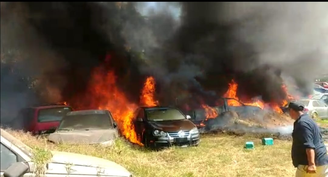 Arde corralón en Uruapan; 28 vehículos calcinados