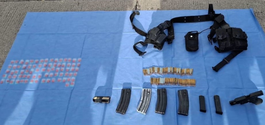 A través de una denuncia a las líneas de emergencias, se tuvo conocimiento de una camioneta con reporte de robo que era conducida a la altura de la localidad de León Cárdenas. Al arribar a la zona, el personal interinstitucional detectó una camioneta de la marca Nissan, linea Frontier y en su interior se decomisó un arma corta con seis cargadores y 71 municiones, también se aseguraron 77 dosis de metanfetamina, equipo táctico y una granada que fue desactivada de forma controlada por personal de la XXI Zona Militar.