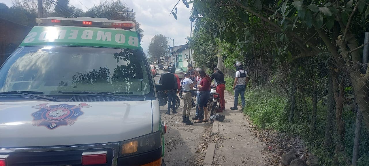 URUAPAN, Mich.- Durante las últimas horas, elementos del Cuerpo de Rescate, auxiliaron a cuatro personas lesionadas, en cuatro diferentes accidentes; tres de ellos, por caída de motocicleta y otro, en choque de automóviles, en esta ciudad de Uruapan.