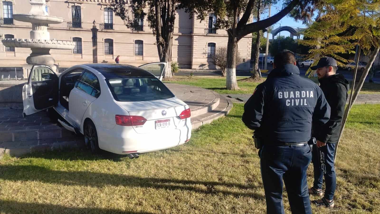 Auto se estrella contra fuente frente al cuartel de la 21 Zona Militar en Morelia