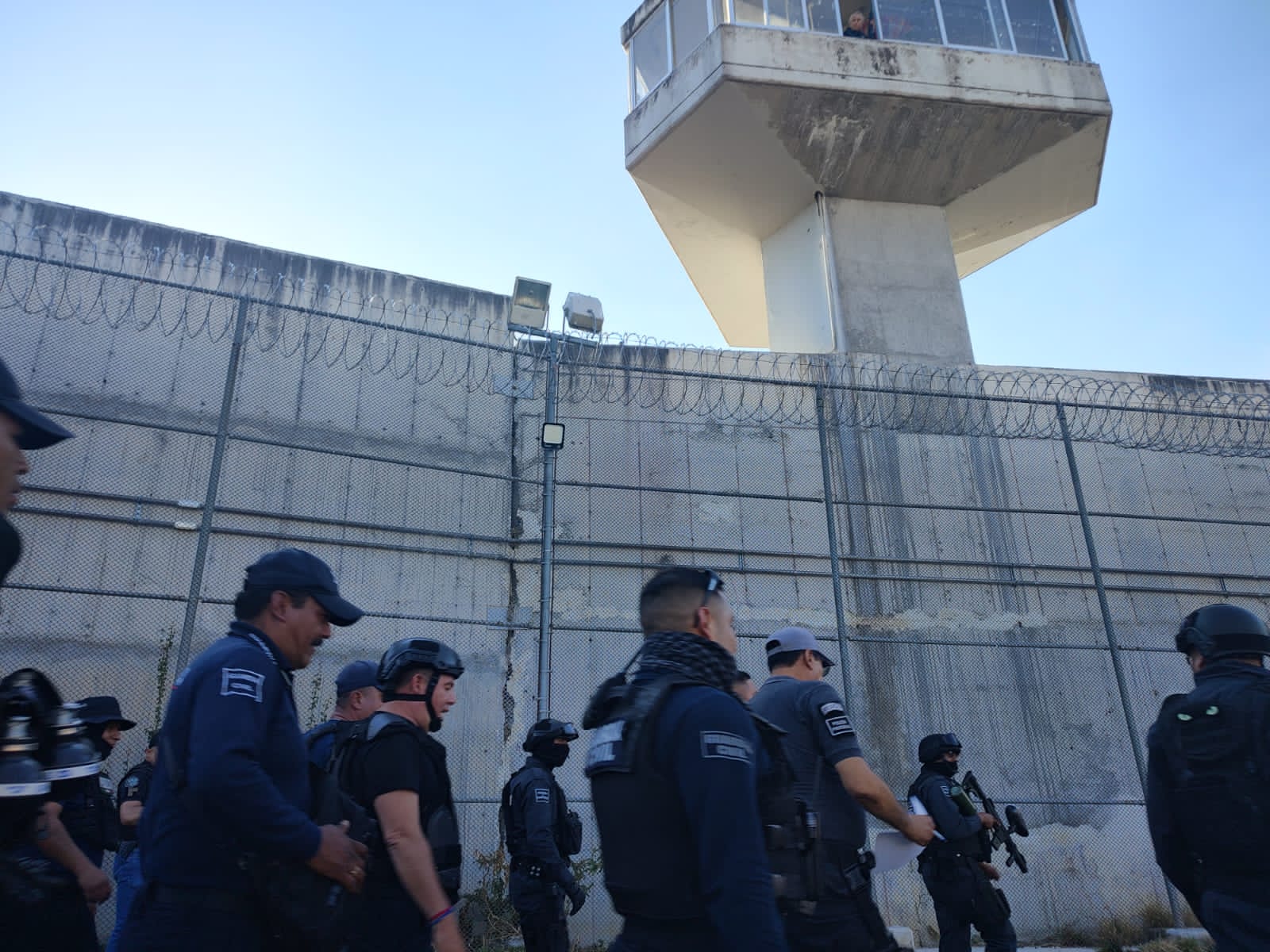 Apoyados por un helicóptero, elementos de las Guardias Civil y Nacional; Fiscalía del Estado y Ejército Mexicano desplegaron un operativo en el exterior del penal para preservar el orden.