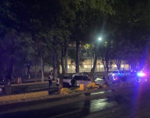 Los hechos fueron reportados cerca de las 19:30 horas de este sábado, a la altura de Ceconexpo, donde quedó atravesada sobre carriles centrales y con múltiples impactos de proyectil de arma de grueso calibre una camioneta RAM de color blanco con negro, de reciente modelo y a unos metros sobre la banqueta se localizó tirada un arma larga, presuntamente arrojada por los atacantes.