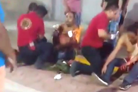 Algunas personas reportaron la situación al número de emergencias, por lo que al lugar acudieron paramédicos locales que le otorgaron las primeras curaciones al comunicador y a bordo de una ambulancia lo trasladaron a un hospital local, donde permanece internado.