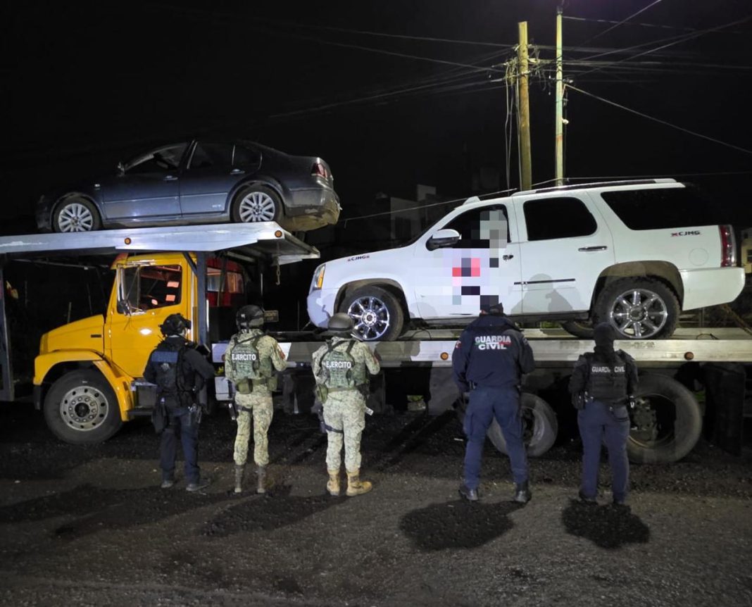 Zitácuaro, Mich.- Elementos de la Base de Operaciones Interinstitucionales (BOI), aseguraron explosivos artesanales, de los utilizados por delincuentes para arrojar desde drones, un arma de fuego y varios vehículos con las siglas CJNG, hecho que ocurrió en la localidad de Aputzio de Juárez, municipio de Zitácuaro. También, durante un recorrido, los uniformados detuvieron a un individuo armado, quien usaba un chaleco balísticos con la leyenda «CJNG».