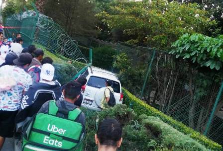 Un vehículo se estrelló contra una de las mallas perimetrales del Parque Zoológico Benito Juárez, la derribó y quedó siniestrado dentro citado lugar, según la información preliminar.