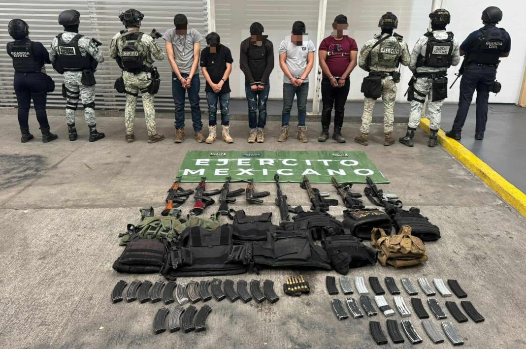 De acuerdo con lo informado por las autoridades, labores para la disuasión del delito y el combate frontal a las células delictivas de la región, permitieron a los agentes de la Guardia Civil, el Ejército Mexicano y la Guardia Nacional, asegurar a los sospechosos en la localidad de San Miguel de las Lomas, mismos que llevaban consigo ocho armas largas de distintos calibres, así como mil 167 cartuchos útiles, 77 cargadores, chalecos tácticos y cascos balísticos.
