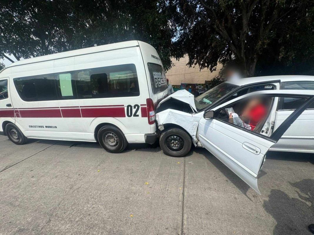 Al menos ocho personas resultaron lastimadas tras el choque de un automóvil contra la retaguardia de una combi de la Ruta Guinda, esto al sur de Morelia, informaron fuentes policiales.