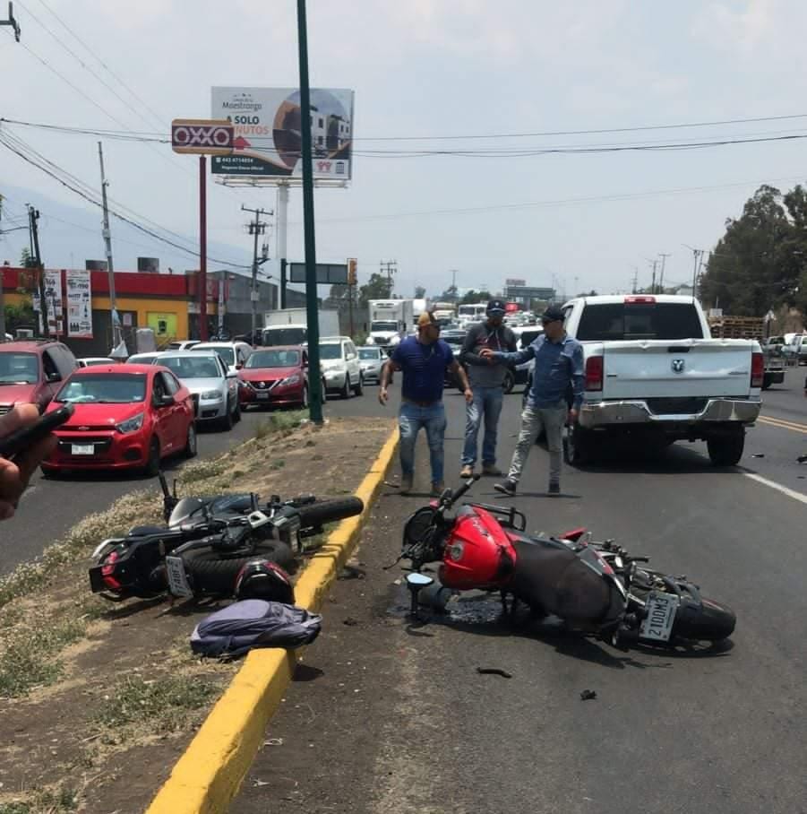 A unos metros los oficiales encontraron dos motocicletas siniestradas, una de color rojo y otra negra, cuyos ocupantes resultaron heridos, por lo que fueron auxiliados por los socorristas y canalizados a un hospital para su adecuada atención médica.