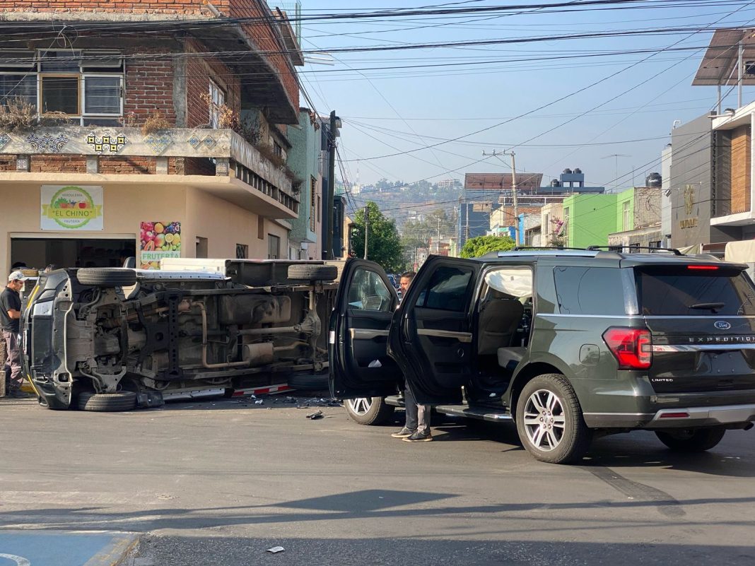 Morelia, Mich.- La mañana de este miércoles se registró un aparatoso accidente vehicular en la colonia Ventura Puente en Morelia, donde una camioneta de carga terminó volcada tras chocar contra una camioneta particular, según trascendió en la labor noticiosa.