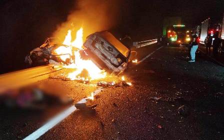 A su llegada los socorristas encontraron el cuerpo sin vida de una persona tirada sobre la cinta asfáltica, junto a un vehículo calcinado, mientras que dentro de auto tipo Atos, se localizó el cadáver de un masculino.