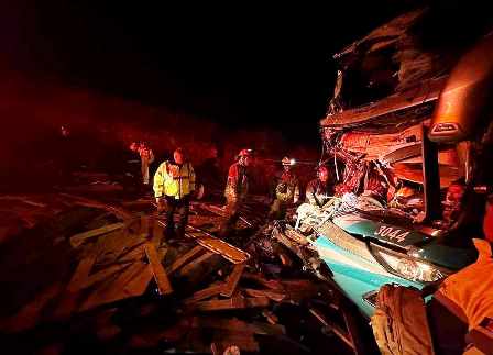 Álvaro Obregón, Mich.- 11 de noviembre de 2023.- La madrugada de este sábado, se registró un choque por alcance entre un autobús de pasajeros y un tráiler, en la autopista de Occidente, mismo que dejó como saldo 33 personas lesionadas y cuantiosos daños materiales.